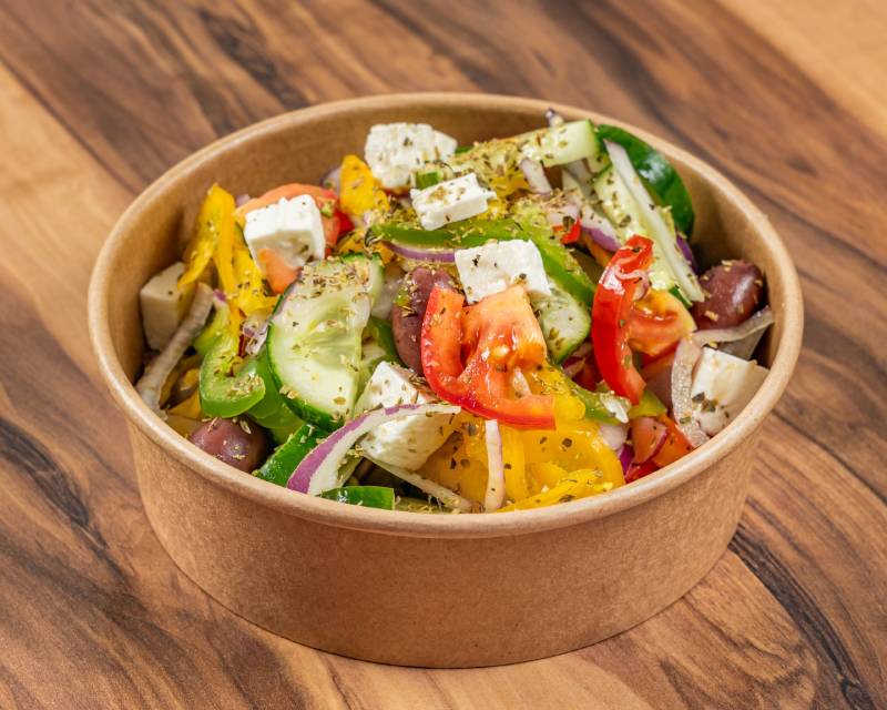 Tomato, cucumber, capsicum, red onion, kalamata olives, feta, oregano and balsamic dressing (gf, v)