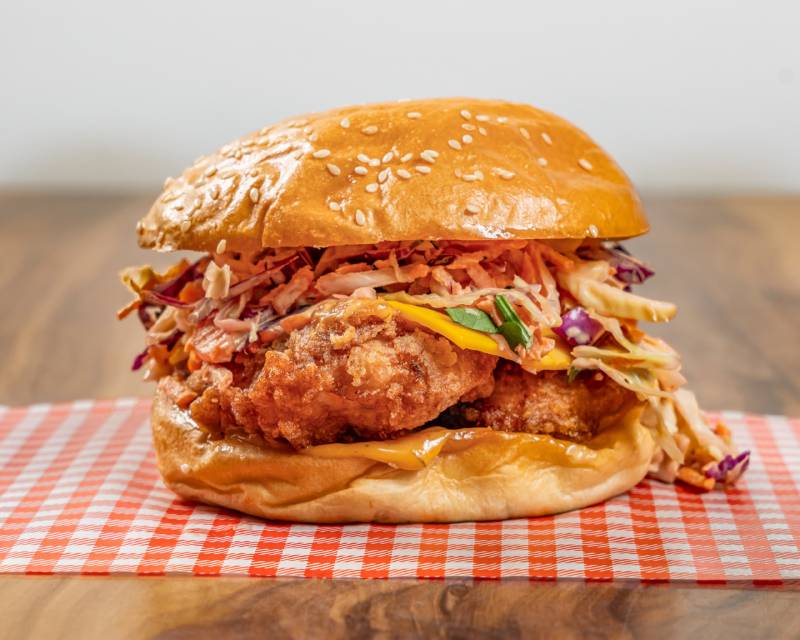 Fried tenders, bacon, cheese, mayo and Sweet Baby Ray’s BBQ Sauce (gfo)